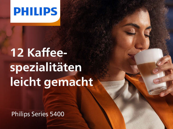 The Philips Series 5400 fully automatic espresso machine is ideal for preparing 12 delicious coffee specialties from fresh coffee beans. The machine boasts an intuitive touchscreen display and a sleek design. Equipped with a grinder and milk frother, this coffee machine leaves nothing to be desired. Up to four people can save their personal coffee preferences for later use.